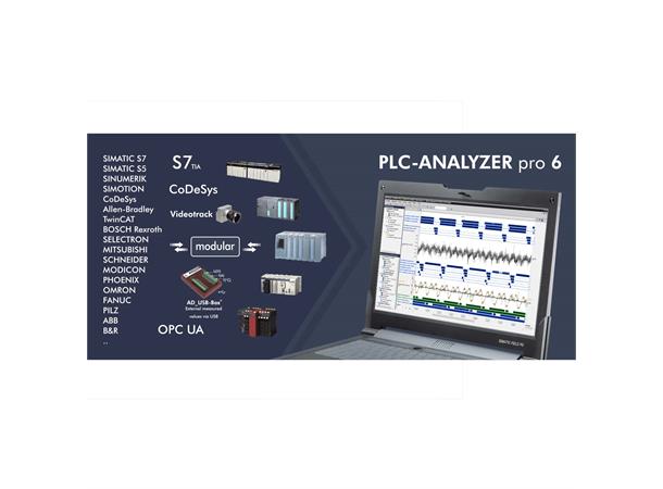 PLC-ANALYZER pro 6 av AUTEM er et programvaresystem for registrering og analyse av målte verdier i PLC-styrte anlegg. Innhenting, presentasjon og evaluering av PLC-signaler som inngang, utgang, flagg, timere, tellere, data fra datablokker, er nå veldig enkelt. I tillegg kan også videodata registreres synkront med PLC-prosessdata (Videotrack-modulen).
