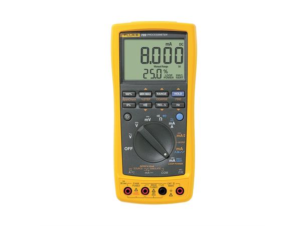 Fluke 789 ProcessMeter er det ultimate feilsøkingsinstrumentet for elektrikere og instrumenteringsteknikere. Den kombinerer funksjonaliteten til en velutstyrt sløyfekalibrator med kraften til et digitalt multimeter med sikkerhetsklarering CAT III 1000 V, CAT IV 600 V og Fluke Connects trådløse egenskaper med tilkoblingsmulighet til IR3000FC-modulen (tilvalg). Fluke 789 har en stor kjerm med tolinjers visning og to nivåer av bakgrunnsbelysning samt ekstern tilgang til sikringer og batterier slik at de er enkle å bytte ut. Og den innebygde, valgbare 250 ohms HART®-motstanden eliminerer behovet for å ha med en separat motstand.