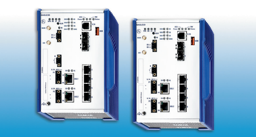 Modular and customizable Eagle Firewall – with various configuration options, the multiport firewalls offer up to eight ports, including Fast Ethernet, Gigabit Ethernet, and Symmetrical High-speed Digital Subscriber Line (SHDSL). Using the web configurator, you can configure the ideal firewall variant for your purposes – even if you only need one of a particular configuration.
