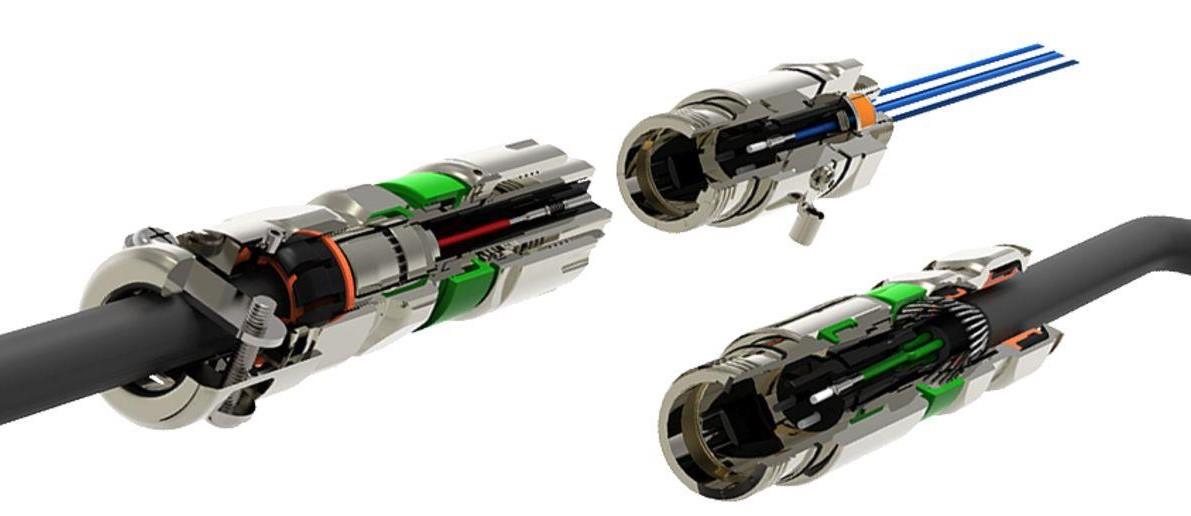 Connectoren kan huse opptil 60 kontakter og kabel fra 0,5mm² til 35mm² og kan operer med spenninger på opptil 750V og 125A.