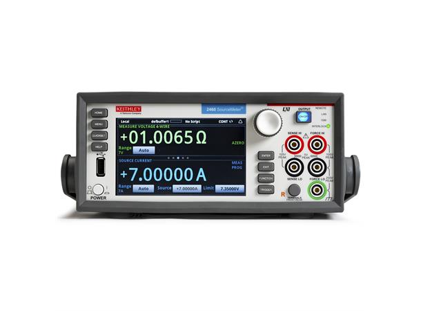 Keithley 2460 High Current SourceMeter® Source Measure Unit (SMU) Instrument brings advanced Touch, Test, Invent® technology right to your fingertips. It combines an innovative graphical user interface (GUI) with capacitive touchscreen technology to make testing intuitive and minimize the learning curve to help engineers and scientists learn faster, work smarter, and invent easier. With its 7A DC and pulse current capability, the 2460 is optimized for characterizing and testing high power materials, devices, and modules such as silicon carbide (SiC), gallium nitride (GaN), DC-DC converters, power MOSFETs, solar cells and panels, LEDs and lighting systems, electrochemical cells and batteries, and much more. These new capabilities, combined with Keithley’s decades of expertise in developing high precision, high accuracy SMU instruments, will make the 2460 a “go-to instrument” for high current applications in the lab and in the rack for years to come.