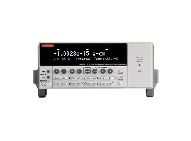The Keithley 6517B Electrometer/High Resistance Meter is the worldwide research laboratory standard for sensitive measurements. With over 60 years of low level measurement expertise, Keithley electrometers provide reliable measurements of current levels down to 10 aA (10×10–18 A), charge levels down to 1 fC, and the highest resistance measurements available up to 1018 O. The 6517B is also capable of measuring the largest voltage range—up to 200 V—with an input impedance exceeding 200 TO. All this performance is built into an instrument that operates as simply as a digital multimeter.