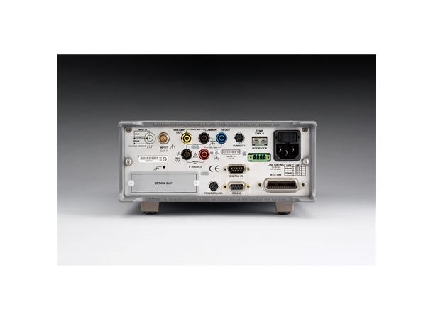 - Built-in test sequences for four different device characterization tests, surface and volume resistivity, surface insulation resistance, and voltage sweeping